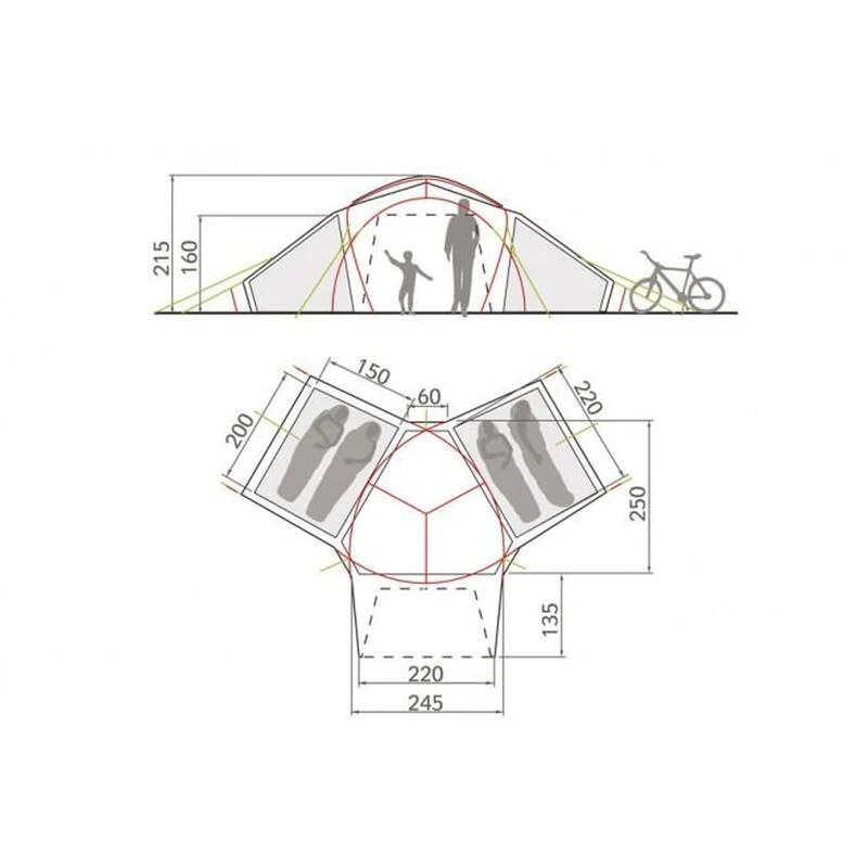 Grande tente familiale pour le camping, intérieur spacieux, 2 cabines-chambres, très bonne ventilation